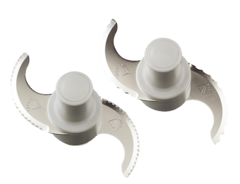 В комплект поставки входят съемный гладкий нож с запатентованным лезвием с низкой посадкой и 4 диска: слайсер 2 мм, терка 2 мм и комплект для кубиков 10х10х10 мм из решетки и диска-слайсера.