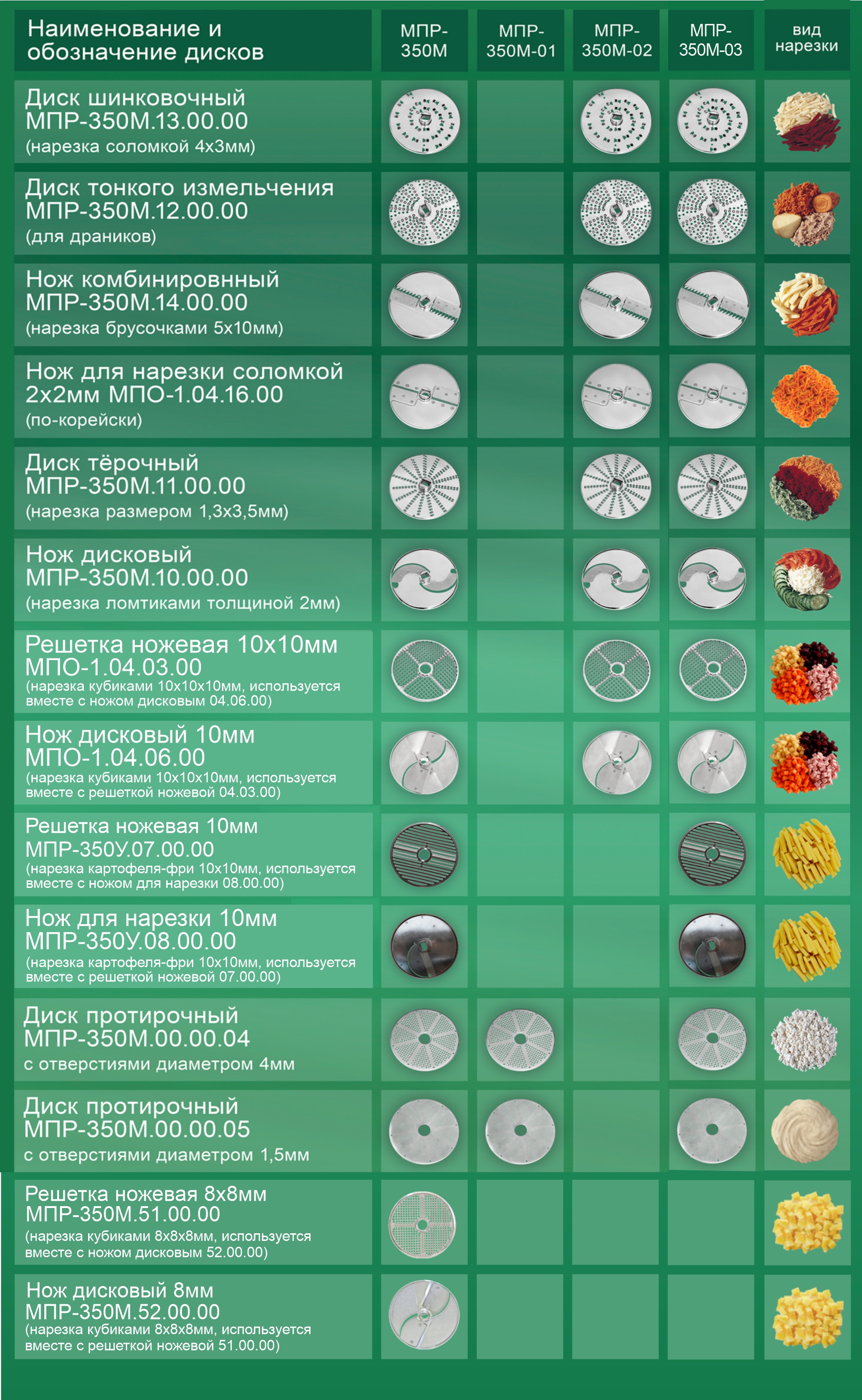 • 8 видов нарезки