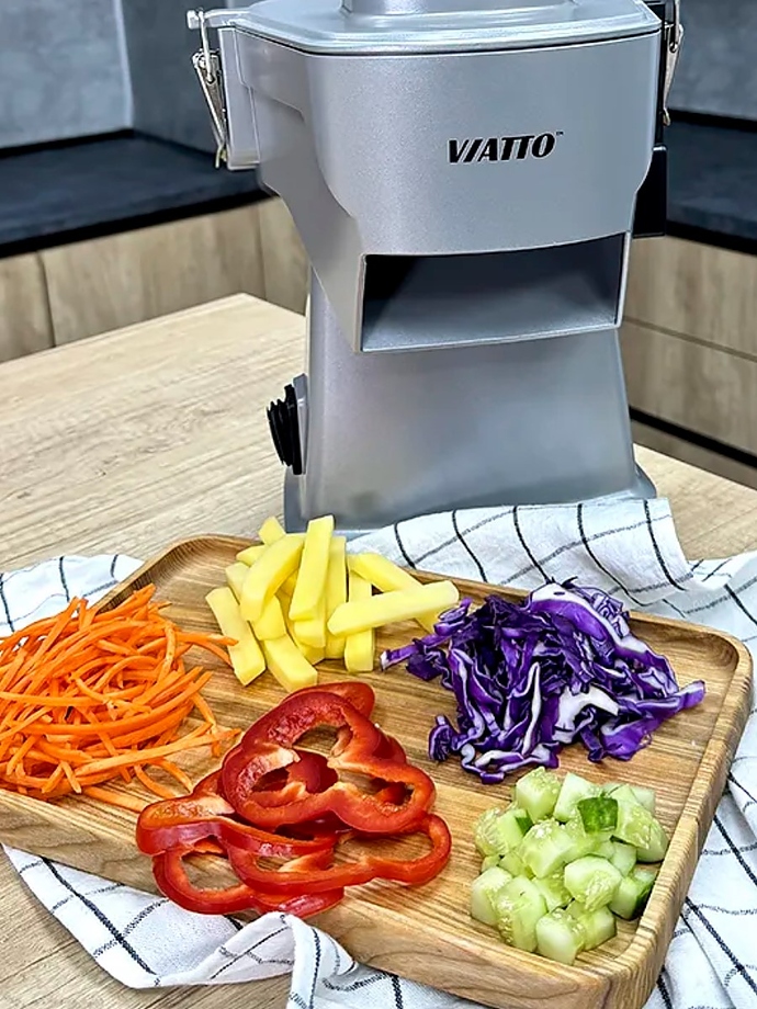 Овощерезка VIATTO VA-FP-GJ817 используется на предприятиях общественного питания, торговли и пищевых производствах для измельчения овощей и фруктов. Модель оснащена защитой от перегрева, глубоким загрузочным бункером и влагозащитным переключателем. Материал корпуса и крышки - алюминиевый сплав.