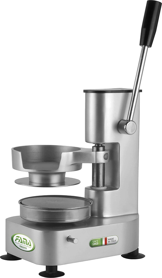 Пресс для гамбургеров Fama FHA 400 используется для формирования мясных заготовок круглой формы на предприятиях общественного питания, торговли и пищевых производствах. Материал корпуса - анодированный алюминий, материал ёмкости для фарша - высококачественная нержавеющая сталь AISI 304, материал стойки и шестерни - нержавеющая сталь, материал нижней основы - высококачественный пластик.