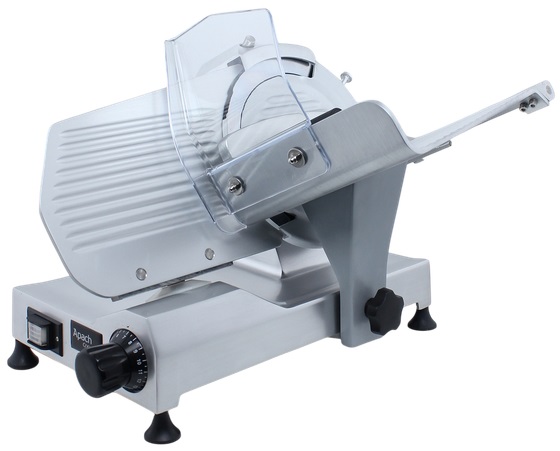 Слайсер Apach Cook Line ASL300 предназначен для нарезки различных продуктов на предприятиях общественного питания и торговли. Модель оснащена вентилируемым мотором и встроенным затачивающим устройством. Корпус выполнен из литого анодированного алюминиевого сплава.
