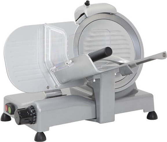RGV Luxury 25 GS PROF применяется для нарезки на ломтики мяса, сыра, колбасных изделий и других продуктов питания на предприятиях общественного питания, торговли и пищевых производствах. Модель оборудована регулировкой толщины, вращающейся рукояткой и съемным заточным устройством. Материал корпуса - окрашенный алюминий, материал лезвия - закаленная сталь с тефлоновым покрытием, материал держателя - алюминий, материал крышки и лотка - литой анодированный алюминий.
