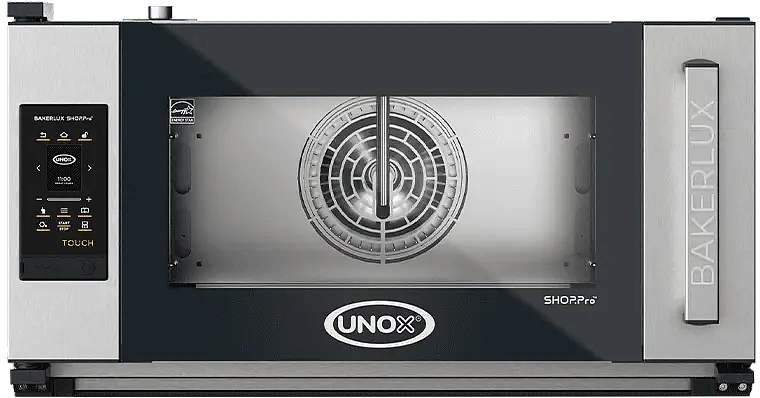 Печь конвекционная UNOX XEFR-03EU-ETRV Elena серии BAKERLUX SHOP.Pro используется для приготовления различных блюд, выпечки хлебобулочных и кондитерских изделий на предприятиях общественного питания, торговли и пищевых производствах. Модель оснащена Touch Screen управлением, дисплеем 2.4", замком, направляющими и LED-подсветкой камеры. Материал камеры - высококачественная нержавеющая сталь AISI 304, материал двери - двойное стекло, материал направляющих - хромированная сталь.