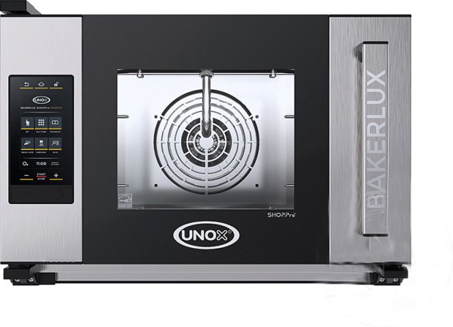 Печь конвекционная​ UNOX XEFT-03HS-EMLV серии BakerLux Shop.Pro предназначена для приготовления различных блюд, выпечки хлебобулочных и кондитерских изделий на предприятиях общественного питания и торговли, в пекарнях и кондитерских. Модель оснащена электронным управлением, светодиодной подсветкой и направляющими с механизмом для предотвращения опрокидывания. Легко открывающееся внутреннее стекло облегчают чистку и обеспечивает максимальную гигиену. Камера выполнена из нержавеющей стали, направляющие - из хромированной стали.