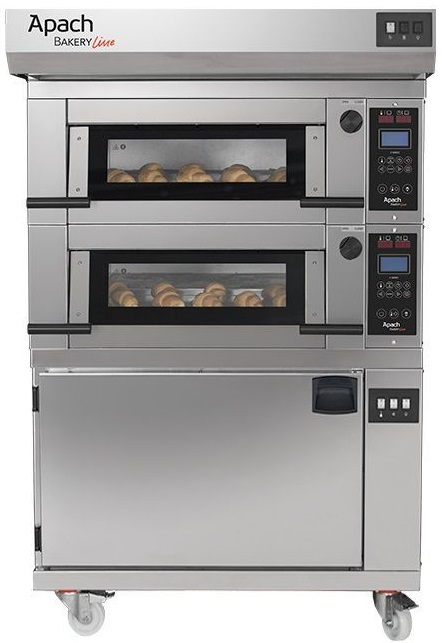 Печь подовая Apach Bakery Line E2LK1P DPBI-T серии E используется на предприятиях общественного питания, торговли, пищевых производствах, в пекарнях и кондитерских для приготовления различных блюд, выпечки хлебобулочных и кондитерских изделий. Модель оборудована цифровой панелью управления с раздельным контролем температур: верх/низ, вытяжкой пара, независимым парогенератором на каждый под, соединительным комплектом для воды и электричества, дверьми со смотровым окном и 2 изоляционными модулями. Материал козырька и корпуса - высококачественная нержавеющая сталь, материал основания - цементный агломерат с металлическим каркасом, материал теплоизоляции - минеральная вата.