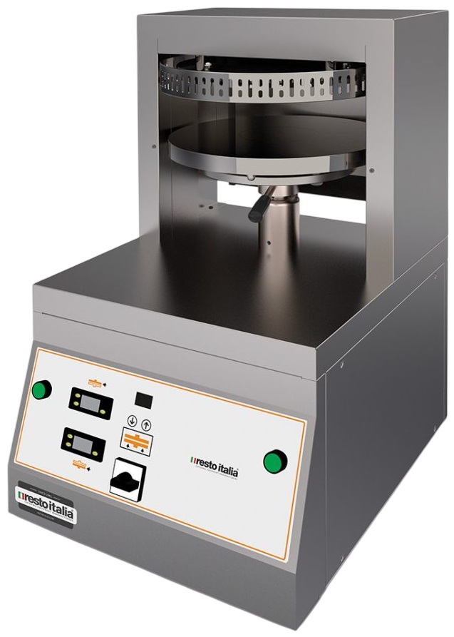 Пресс Resto Italia Formatrice per pizza c/bordo RI45 предназначен для формирования круглой основы пиццы, формирования бортов и подпекания на предприятиях общественного питания, торговли и пищевых производствах. Модель оснащена электромеханическим управлением, регулировкой толщины теста и 2 гладкими тефлоновыми пластинами.