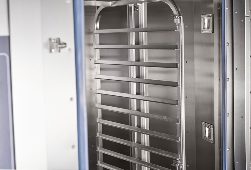 - После завершения процесса приготовления поворотная рама автоматически устанавливается в положение для выкатывания тележки-шпильки