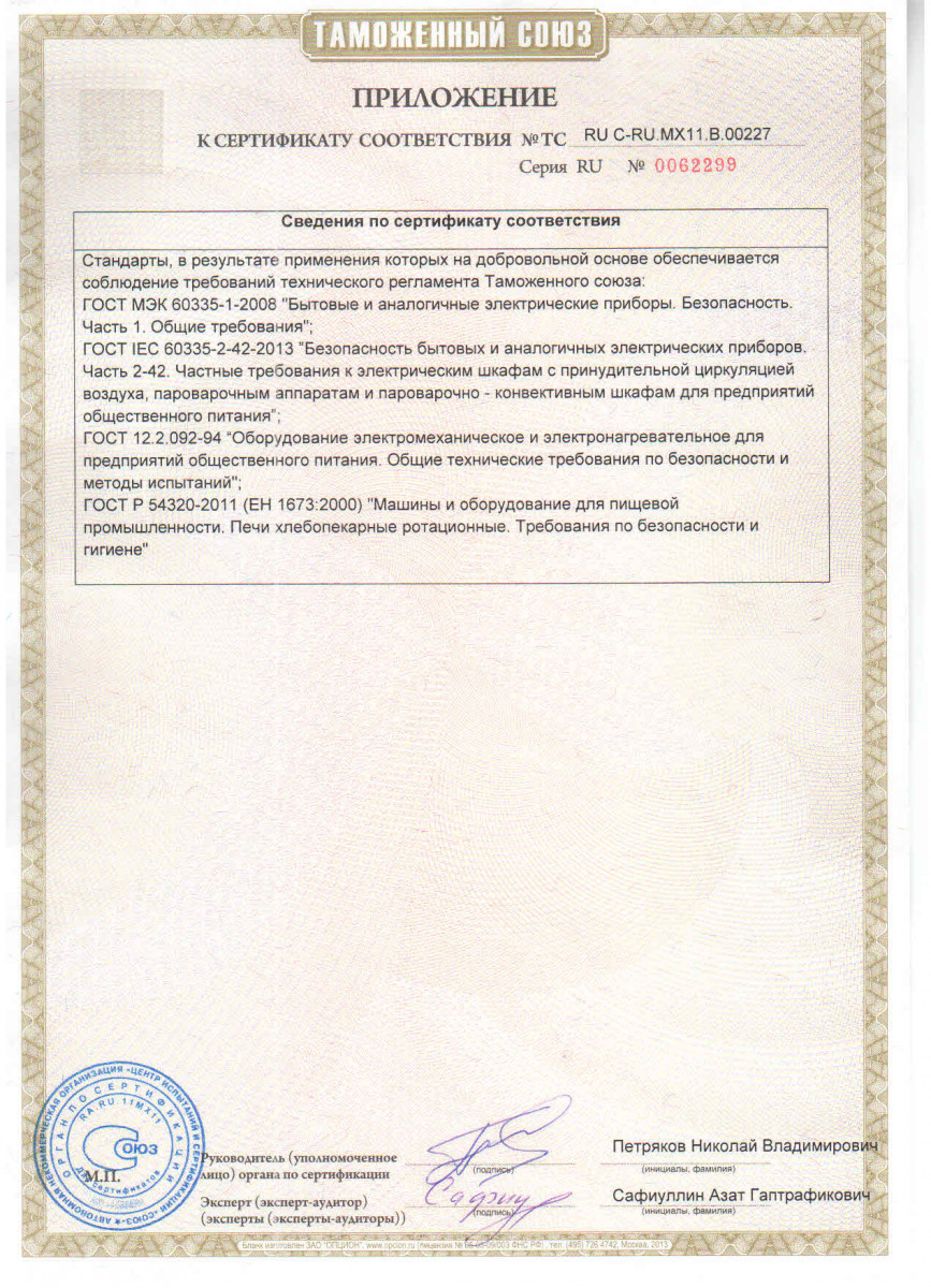 • Конвекция с паром (нагрев до 270 °С с периодическим впрыском пара)