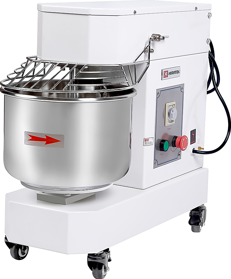 Спиральный тестомес Miratek PR-10 используется в пекарнях, кондитерских, на предприятиях общественного питания и торговли для замешивания теста с различной основой и консистенцией для выпечки большого ассортимента хлебобулочной продукции из пшеничного, ржаного и ржано-пшеничного теста.