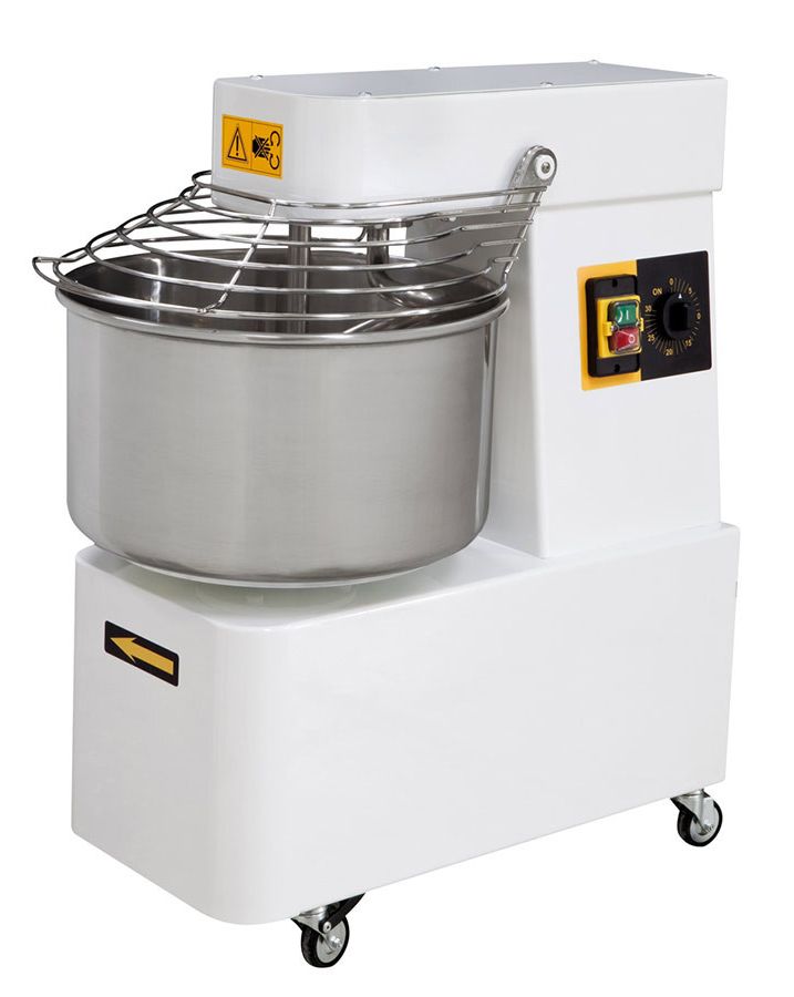 Крышка оборудована предохранительным микровыключателем. Управление тестомесом происходит с помощью электромеханической панели. Корпус выполнен из окрашенной стали.