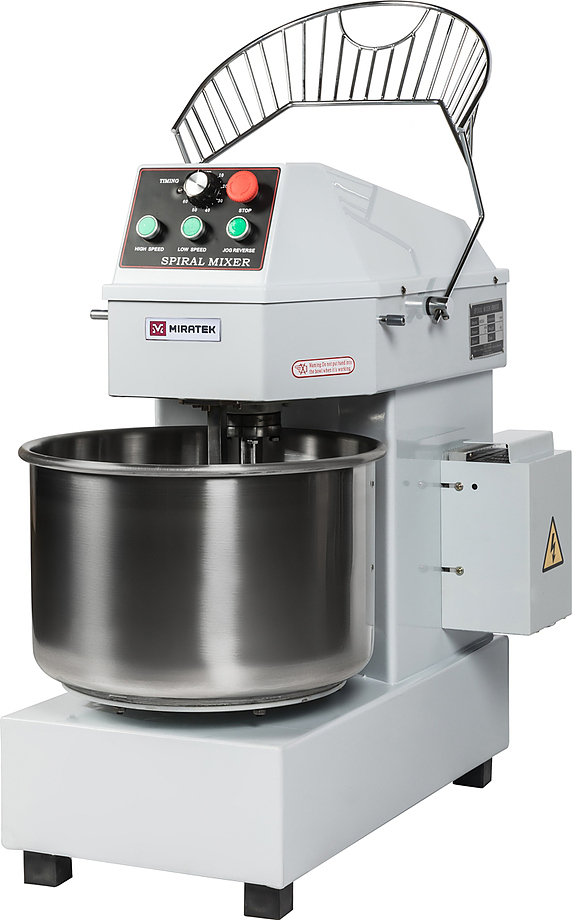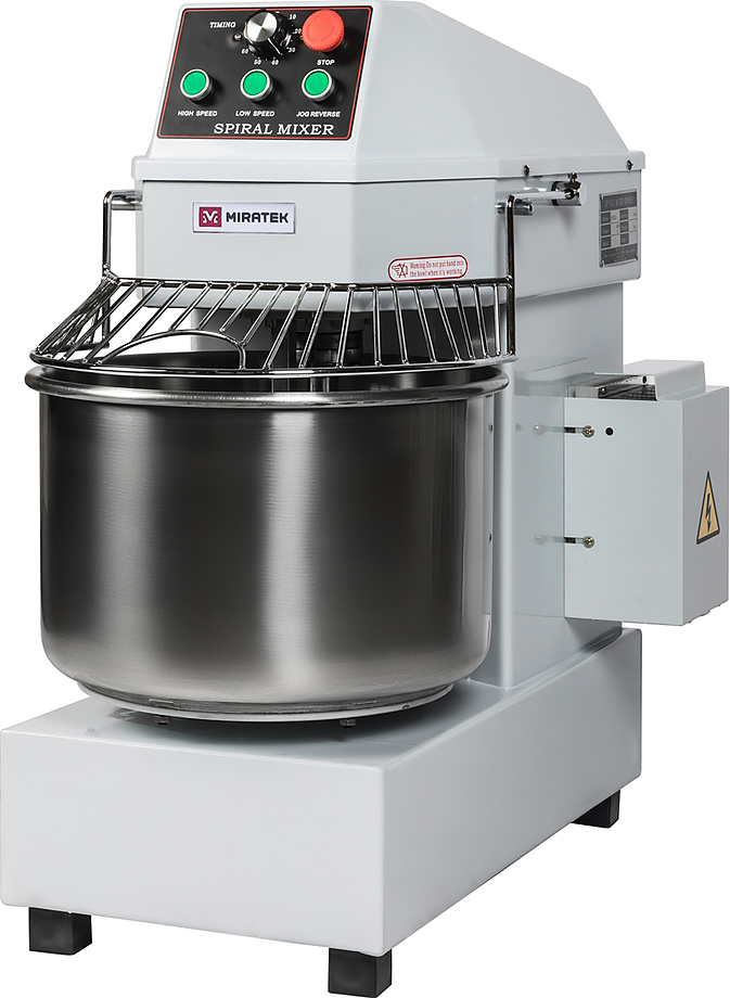 Спиральный тестомес Miratek PX-40 используется в пекарнях, кондитерских, на предприятиях общественного питания и торговли для замешивания теста с различной основой и консистенцией для выпечки большого ассортимента хлебобулочной продукции из пшеничного, ржаного и ржано-пшеничного теста.
