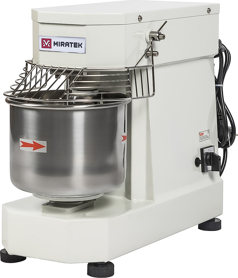 Спиральный тестомес Miratek PR-5 используется в пекарнях, кондитерских, на предприятиях общественного питания и торговли для замешивания теста с различной основой и консистенцией для выпечки большого ассортимента хлебобулочной продукции из пшеничного, ржаного и ржано-пшеничного теста.