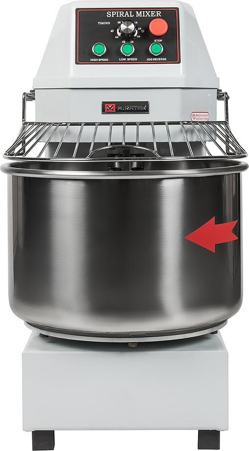 - Месильный орган, состоящий из вращающейся спирали и неподвижного отсекателя, способствует быстрому и качественному замесу
