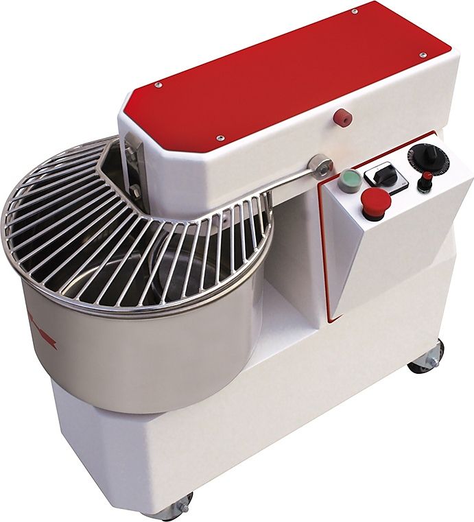 Спиральный тестомес Pizza Group IR22 VS используется на предприятиях пищевой промышленности, общественного питания и торговли для замеса теста для приготовления пиццы, хлеба и тонких лепешек. Модель оснащена наклонной панелью управления с потенциометром для изменения скорости, таймером, защитной решеткой над дежой и колесами. Спираль, решетка, дежа и отсекатель выполнены из высококачественной нержавеющей стали.