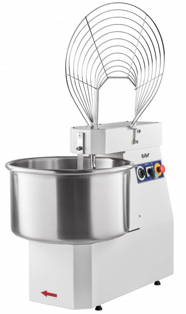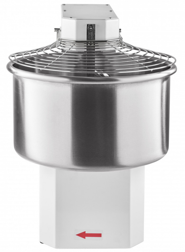 Корпус выполнен из высококачественной конструкционной стали с полимерным покрытием, металлические детали машины, контактирующие с продуктом во время замеса (спираль, дежа, нож) - из нержавеющей стали AISI 304.