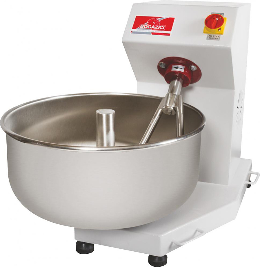 Вилочный тестомес Bogazici BHY-35.01 используется на предприятиях общественного питания, торговли и пищевых производствах для замеса больших объемов сдобного и дрожжевого теста перед выпечкой хлебобулочных и кондитерских изделий, а также для взбивания и замешивания фрикаделек, сосисок, колбасы, масла, йогурта, сливок и прочей продукции. Механическое управление.