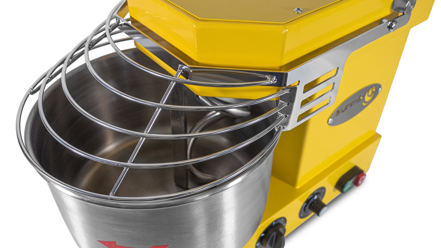 Спиральный тестомес Sunmix SUN6 Y используется на предприятиях общественного питания, торговли и пищевых производствах для замешивания различных видов теста. Тестомес оснащен механическим управлением, выдвижными колесиками и таймером. Материал дежи, месильного органа и защитного кожуха - нержавеющая сталь.