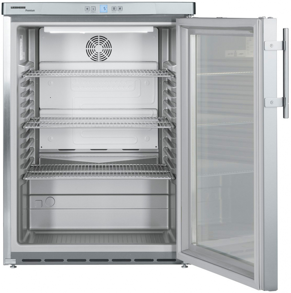 Холодильный шкаф Liebherr​ FKUv 1663 предназначен для охлаждения и кратковременного хранения скоропортящихся продуктов и напитков на предприятиях общественного питания и торговли. Модель оснащена электронным управлением и цифровой индикацией температуры. Внутренняя прокладка выполнена из серого полистирола, корпус и ручка - из нержавеющей стали, дверь - из двойного стекла, решетки - из металла с порошковым покрытием.