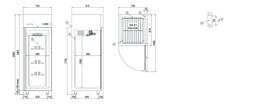 Холодильный шкаф Coldline A70/1M используется на предприятиях общественного питания, торговли и пищевых производствах для охлаждения и кратковременного хранения продуктов питания. Модель оснащена электронным управлением, LED-подсветкой, замком, ручкой и регулируемыми по высоте ножками. Материал внешней, внутренней, ручки, направляющих и ножек - высококачественная нержавеющая сталь AISI 304, материал задней стенки - оцинкованной/окрашенной стали.
