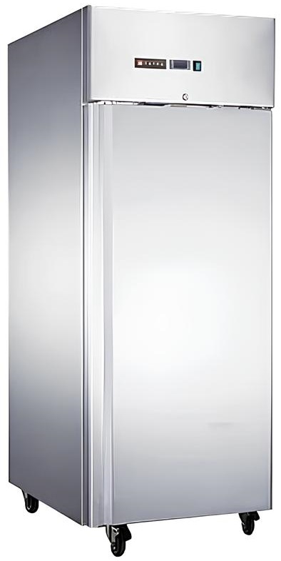 Шкаф холодильный Tatra TRC500 TN используется для охлаждения и кратковременного хранения продуктов питания на предприятиях общественного питания, торговли, а также пищевых производствах. Модель с электронным управлением, автоматической разморозкой, встроенным компрессорным холодильным агрегатом, дверным замком и 4 колесами, 2 со стопорными ограничителями. Материал корпуса - высококачественная нержавеющая сталь, материал задней стенки - оцинкованная сталь.