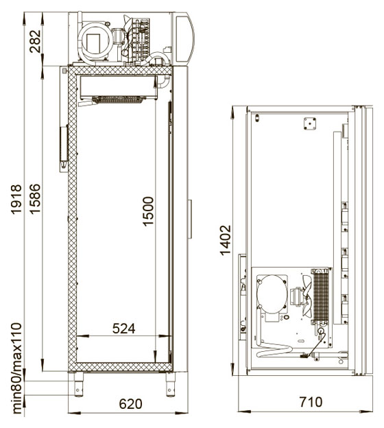 В настоящее время завод применяет регулируемые ножки, обеспечивающие высоту холодильных шкафов POLAIR – среднетемпературных – 1960 мм и низкотемпературных – 1996 мм. На эксплуатационные свойства холодильных шкафов POLAIR данная особенность не влияет. В связи с применением регулируемых по высоте ножек разных производителей общая высота холодильных шкафов может варьироваться следующим образом: для среднетемпературных шкафов объемом 500, 700, 1000 и 1400 литров высота составляет 2028 мм или 1960 мм, низкотемпературных шкафов – 2064 мм или 1996 мм.