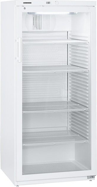 Холодильный шкаф Liebherr FKv 5443предназначен для охлаждения и кратковременного хранения скоропортящихся продуктов и напитков на предприятиях общественного питания и торговли. Модель оснащена механическим управлением и цифровой индикацией температуры. Внутренняя прокладка выполнена из белого полистирола, дверь - из стекла, корпус и ручка - из стали, покрытие решеток - из пластика.