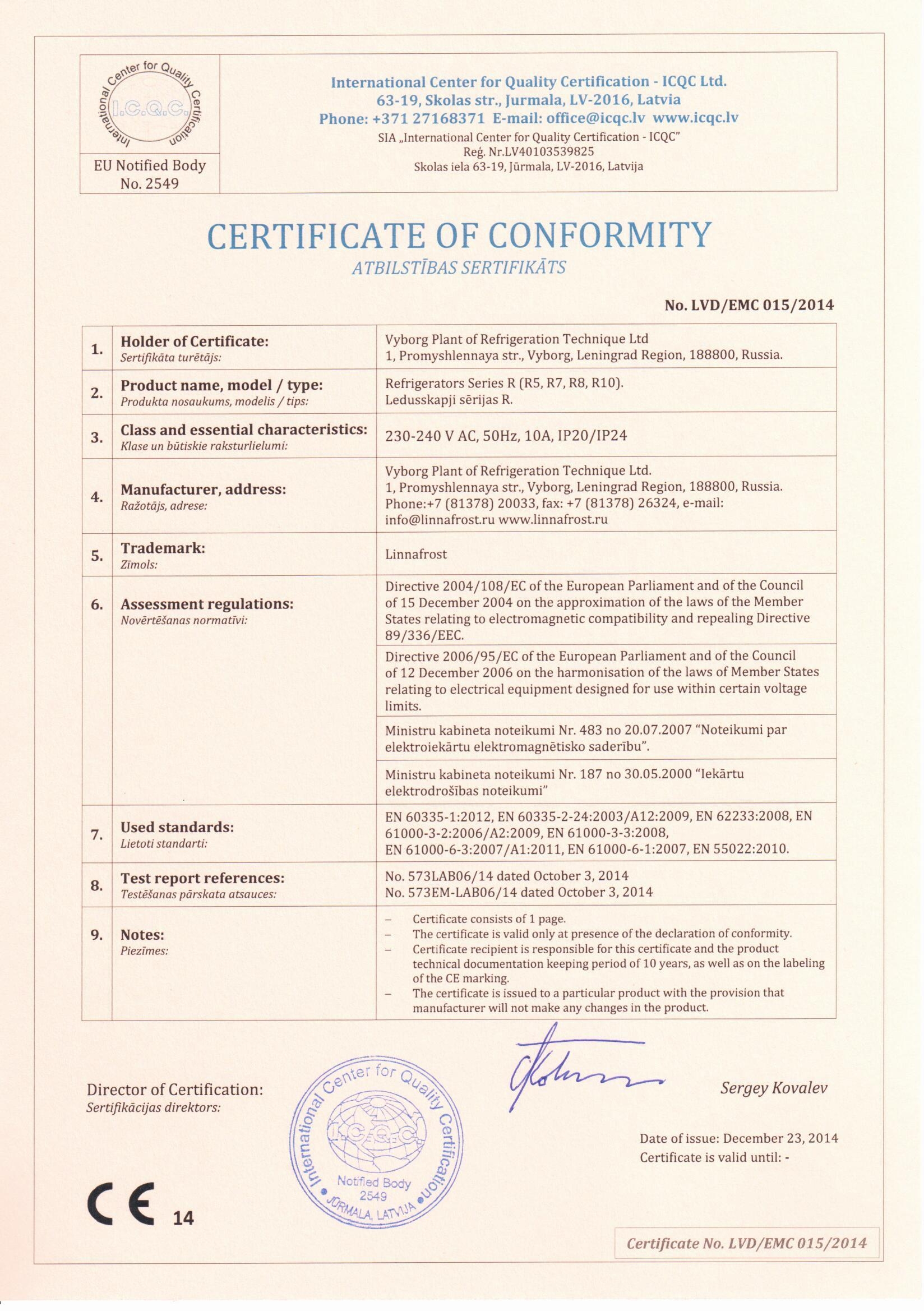 • Компрессор: Danfoss / Cubigel / Tecumseh