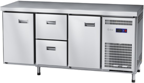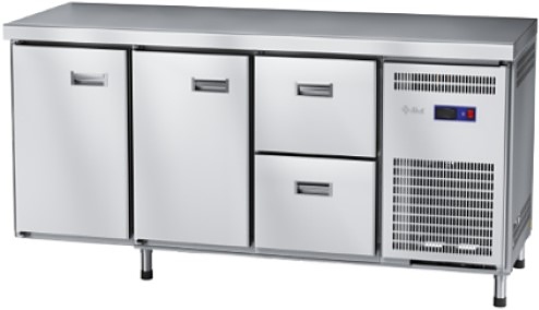 Холодильный стол Abat СХС-70-02 используется на предприятиях общественного питания и торговли для охлаждения и кратковременного хранения продуктов питания и напитков. Рабочая поверхность предназначена для раскатки теста и обработки ингредиентов перед приготовлением различных блюд. В модели установлена неохлаждаемая рабочая поверхность, распашные дверцы с магнитной вставкой, ящики, полки-решетки и регулируемые по высоте ножки. Материал корпуса - нержавеющая сталь AISI 202, материал изоляции - пенополиуретан.