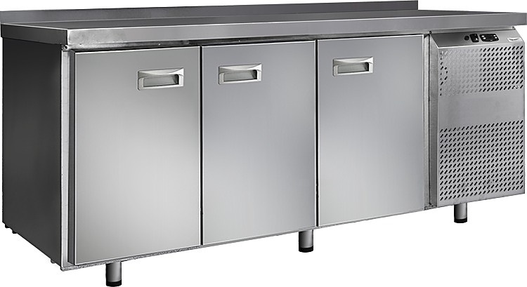 Холодильный стол Finist СХС-600-3 используется на предприятиях общественного питания, торговли и пищевых производствах для хранения и обработки полуфабрикатов из мяса и рыбы, заготовок для салата, охлажденных напитков и прочих пищевых продуктов. Управление при помощи кнопочной панели управления, оснащенной цифровым дисплеем. 3 холодильные камеры с распашными дверцами, агрегатный отсек располагается сбоку. Стол установлен на ножки с подпятниками. Материал корпуса - нержавеющая сталь.