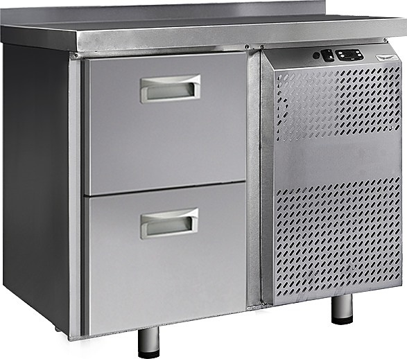 Холодильный стол Finist СХС-600-0/2 используется на предприятиях общественного питания, торговли и пищевых производствах для хранения и обработки полуфабрикатов из мяса и рыбы, заготовок для салата, охлажденных напитков и прочих пищевых продуктов. Управление при помощи кнопочной панели управления, оснащенной цифровым дисплеем. 2 выдвижных ящика, агрегатный отсек располагается сбоку. Стол установлен на ножки с подпятниками. Материал корпуса - нержавеющая сталь.