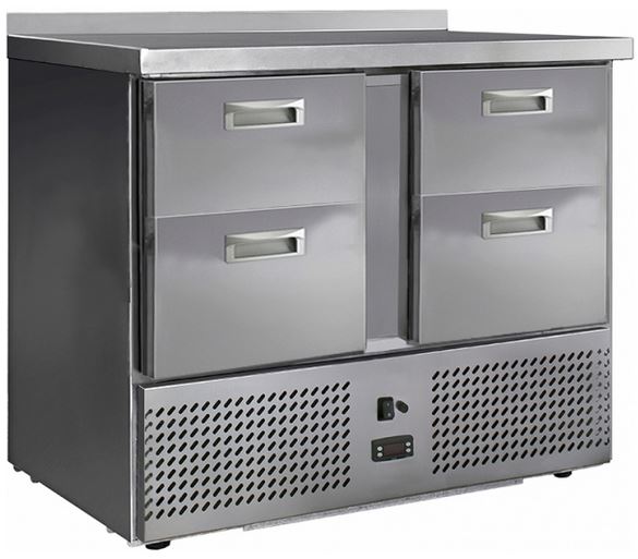 Холодильный стол Finist СХСн-700-0/4 используется на предприятиях общественного питания, торговли и пищевых производствах для хранения и обработки полуфабрикатов из мяса и рыбы, заготовок для салата, охлажденных напитков и прочих пищевых продуктов. Управление при помощи кнопочной панели управления, оснащенной цифровым дисплеем. 4 выдвижных ящика, агрегатный отсек располагается сбоку. Стол установлен на ножки с подпятниками. Материал корпуса - нержавеющая сталь.