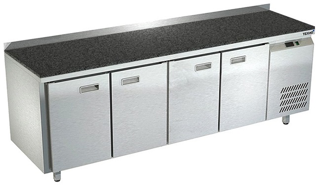 Холодильный стол Техно-ТТ СПБ/О-421/40-2206 предназначается для раскатки теста, обработки, охлаждения и кратковременного хранения продуктов и напитков на предприятиях общественного питания, торговли и пищевых производствах. Секции оснащены направляющими и ящиками с доводчиками. Материал корпуса - нержавеющая сталь AISI 430, материал столешницы - гранит (толщина 20 мм), материал задней панели и дна - оцинкованная сталь.