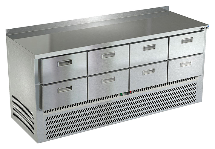 Холодильный стол Техно-ТТ СПН/О-223/08-1907 предназначается для раскатки теста, обработки, охлаждения и кратковременного хранения продуктов и напитков на предприятиях общественного питания, торговли и пищевых производствах. Секции оснащены направляющими и ящиками с доводчиками. Материал корпуса и столешницы - нержавеющая сталь AISI 430, материал задней панели и дна - оцинкованная сталь.