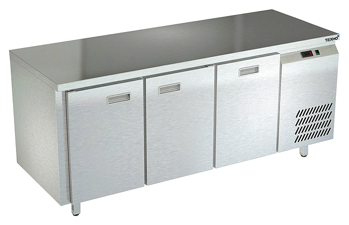 Холодильный стол Техно-ТТ СПБ/Т-122/21-1806 предназначается для раскатки теста, обработки продуктов и ингредиентов, заморозки и хранения продукции, а также для размещения теплового оборудования на предприятиях общественного питания, торговли и пищевых производствах. Двери оснащены доводчиками. Материал корпуса и столешницы - нержавеющая сталь AISI 430, материал дна и задней панели - оцинкованная сталь.