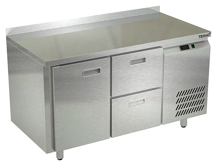 Холодильный стол Техно-ТТ СПБ/Т-222/12-1307 предназначается для раскатки теста, обработки продуктов и ингредиентов, заморозки и хранения продукции, а также для размещения теплового оборудования на предприятиях общественного питания, торговли и пищевых производствах. Двери оснащены доводчиками. Материал корпуса и столешницы - нержавеющая сталь AISI 430, материал дна и задней панели - оцинкованная сталь.