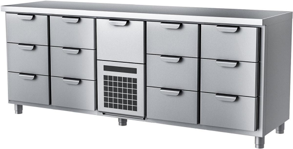 Холодильный стол HappyChef TC GH 3-3-CBR-3-3 используется на предприятиях общественного питания, торговли и пищевых производствах для хранения и обработки продуктов питания. Модель оснащена быстросъемными модулями, моющимся фильтром и регулируемыми ножками. Материал корпуса - высококачественная нержавеющая сталь AISI 430, материал столешницы - высококачественная нержавеющая сталь AISI 304 (толщина 2 мм).