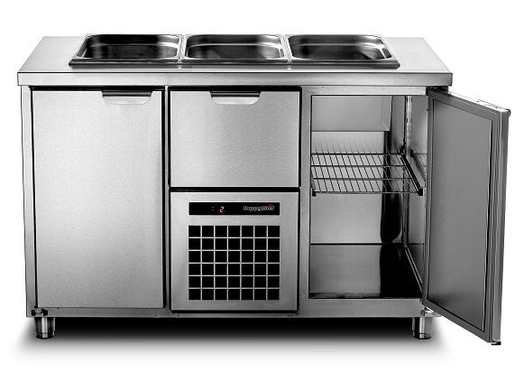 Холодильный стол HappyChef TC GL 1-CR-2 используется на предприятиях общественного питания, торговли и пищевых производствах для хранения продуктов питания в охлажденном виде. Модель оснащена ванной с воздушным охлаждением, быстросъемными модулями, моющимся фильтром и регулируемыми ножками. Материал корпуса - высококачественная нержавеющая сталь AISI 430, материал столешницы - высококачественная нержавеющая сталь AISI 304 (толщина 2 мм).