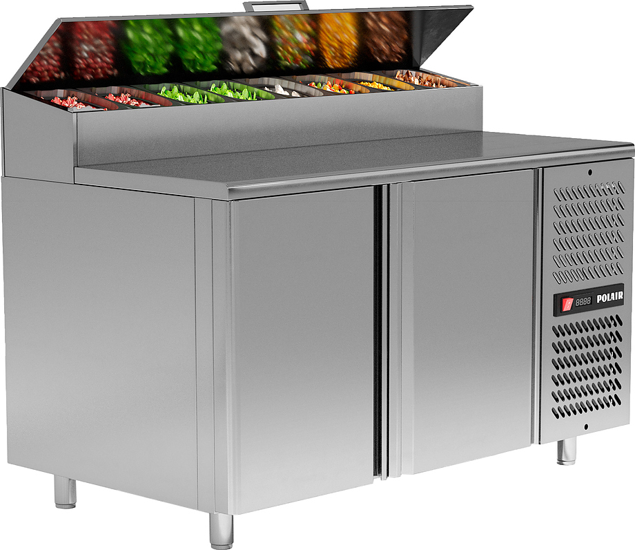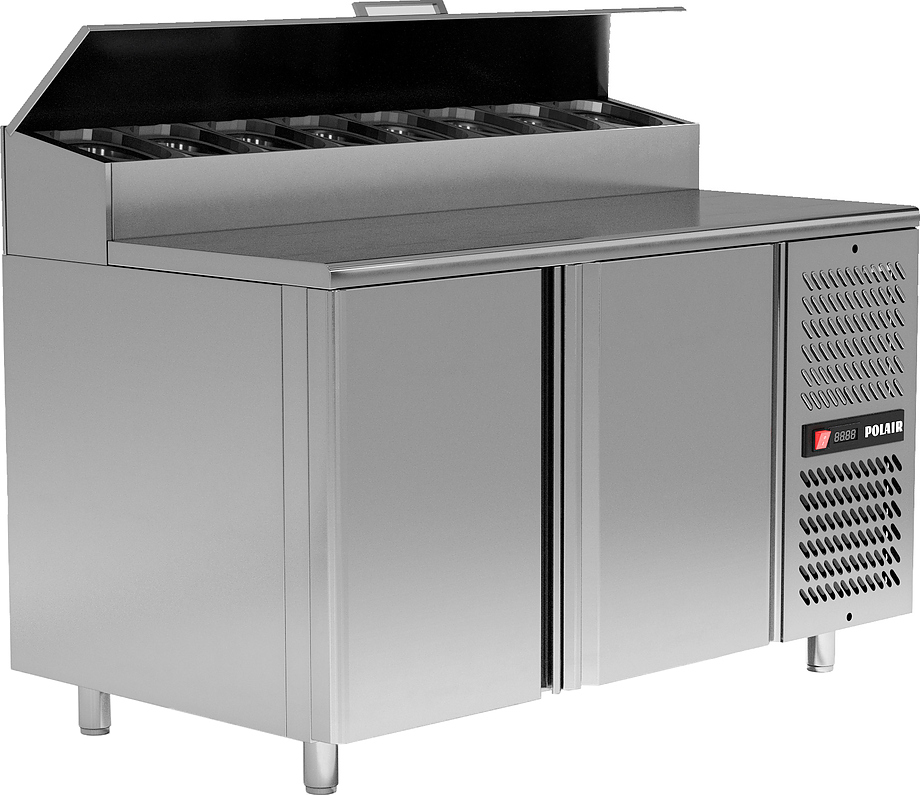 Холодильный стол POLAIR TM2ENvt-G используется для хранения продуктов и обработки ингредиентов на предприятиях общественного питания, торговли и пищевых производствах. Модель оснащена электронным терморегулятором, автоматической оттайкой, интегрированной витриной, крышкой и регулируемыми ножками. Материал корпуса, дверей, столешницы - высококачественная нержавеющая сталь, материал термоизоляции - пенополиуретан.