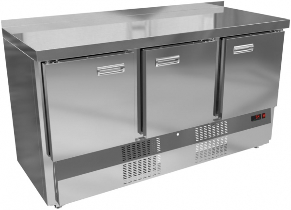 Холодильный стол KRONER СХб 3-150-70 используется для хранения продуктов и обработки ингредиентов на предприятиях общественного питания, торговли и пищевых производствах. Модель оснащена электронным терморегулятором и автоматической оттайкой. Материал цельнозаливного корпуса, дверей и столешницы - шлифованная высококачественная нержавеющая сталь, материал задней стенки и дна - шлифованная сталь.