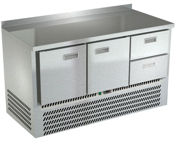 Холодильный стол Техно-ТТ СПН/О-222/22-1407 предназначен для раскатки теста, обработки, охлаждения и кратковременного хранения продуктов и напитков на предприятиях общественного питания и торговли. Модель оснащена компрессором АСС (Италия), каждая секция - направляющими и сетчатой полкой, двери и ящики - доводчиками. Корпус выполнен из нержавеющей стали, задняя стенка - из оцинкованной стали.