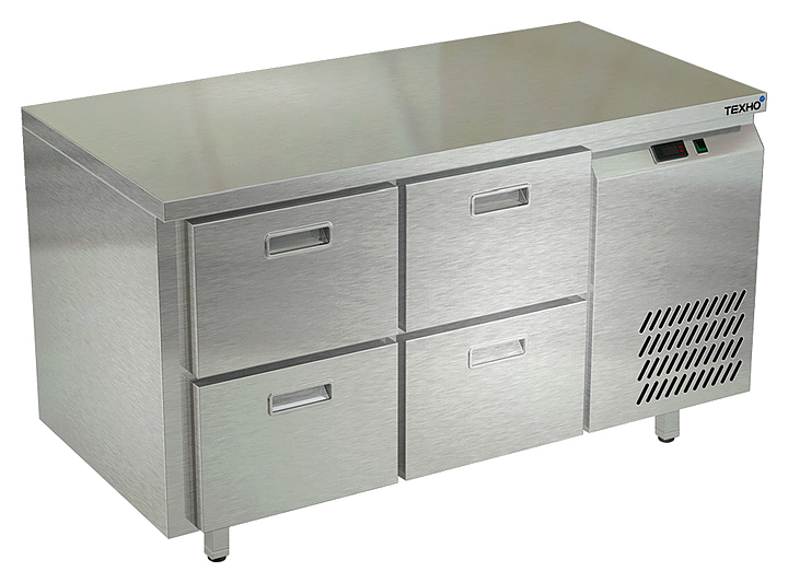 Холодильный стол Техно-ТТ СПБ/О-123/04-2207 предназначен для раскатки теста, обработки, охлаждения и кратковременного хранения продуктов и напитков на предприятиях общественного питания и торговли. Модель оснащена компрессором АСС (Италия), каждый ящик - доводчиками. Корпус выполнен из нержавеющей стали, задняя стенка - из оцинкованной стали.