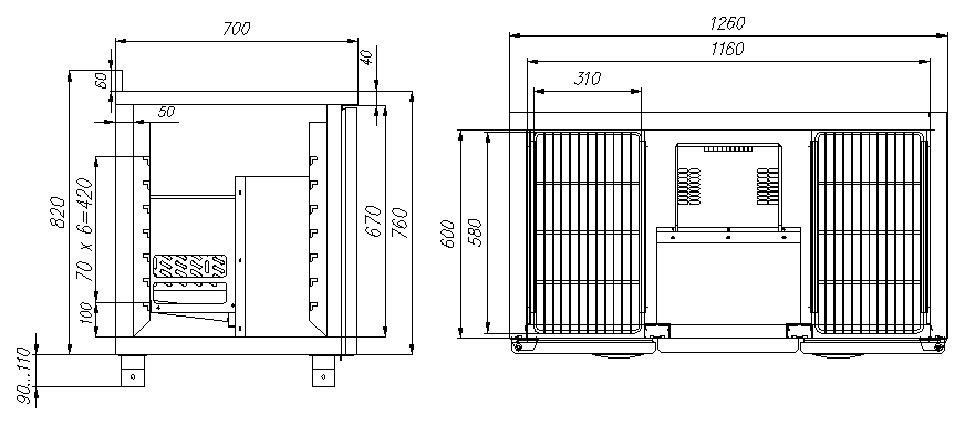 Холодильный стол Carboma T70 M2-1 9006 (2GN/NT 13) предназначен для раскатки теста, обработки ингредиентов для приготовления блюд, охлаждения и кратковременного хранения скоропортящихся продуктов и напитков на предприятиях общественного питания и торговли. Модель оснащена дверью с доводчиком и регулируемыми по высоте ножками высотой от 90 до 110 мм. Цельнозаливной корпус выполнен из оцинкованной стали толщиной 50 мм, столешница - из нержавеющей стали.