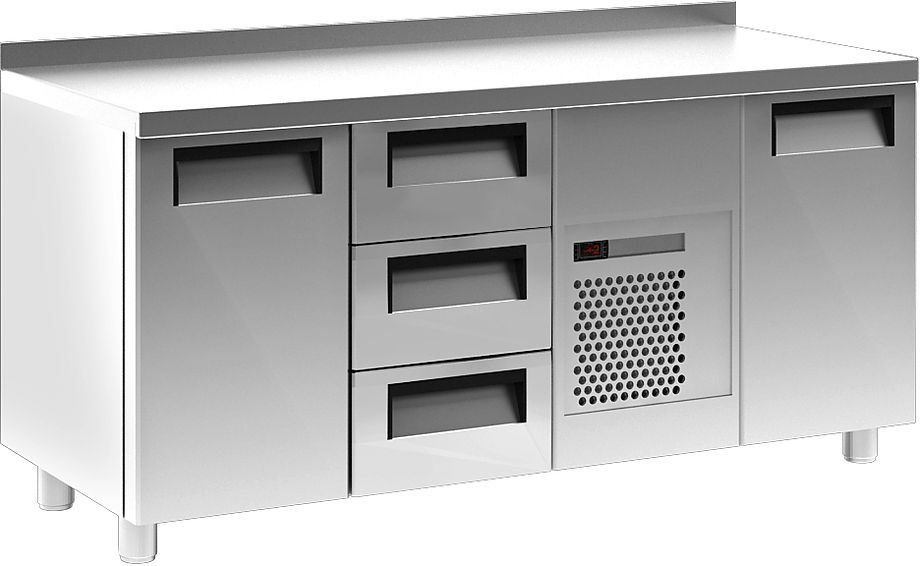 Холодильный стол Сarboma T70 M3-1 0430 (3GN/NT 311) предназначен для раскатки теста, обработки ингредиентов для приготовления блюд, охлаждения и кратковременного хранения скоропортящихся продуктов и напитков на предприятиях общественного питания и торговли. Модель оснащена 6 полками, 3 расположенными слева ящиками и регулируемыми ножками высотой от 90 до 110 мм. Цельнозаливной корпус выполнен из нержавеющей стали с теплоизоляцией из пенополиуретана, дверцы - из металла.