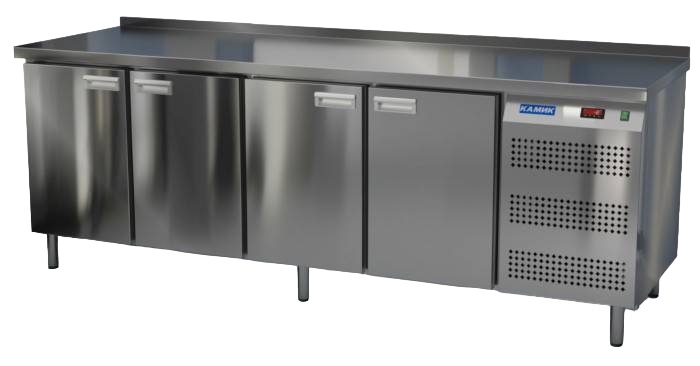 Холодильный стол КАМИК СО-40206Н используется на предприятиях общественного питания и торговли для охлаждения и хранения продуктов, напитков и готовых блюд. Конструкция разделена на секции, каждая из которых оборудована сетчатой полкой и парой направляющих. Корпус выполнен из нержавеющей стали AISI 430 толщиной 1 мм, столешница - из нержавеющей стали AISI 304 толщиной 1,5 мм.