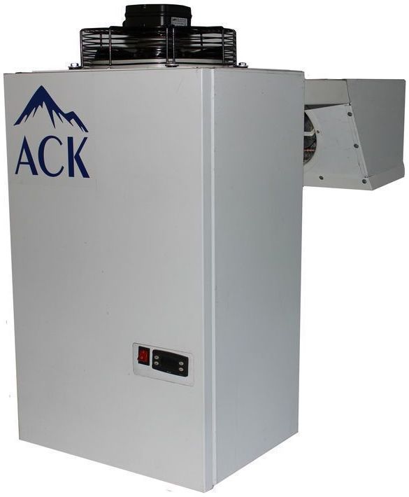 Среднетемпературный моноблок АСК-Холод МС-11 предназначен для поддержания необходимого температурного режима в холодильных камерах на предприятиях пищевой промышленности, общественного питания и торговли. Модель выполнена в виде единого блока, воздухоохладитель (испаритель) которого устанавливается во внутренний объем холодильной камеры, а компрессорно-конденсаторный блок – снаружи. Корпус изготовлен из оцинкованной стали белого цвета толщиной 0,9-1,2 мм с полимерным покрытием в защитной пленке, трубы конденсатора и испарителя - из меди, ребра - из алюминиевого сплава.