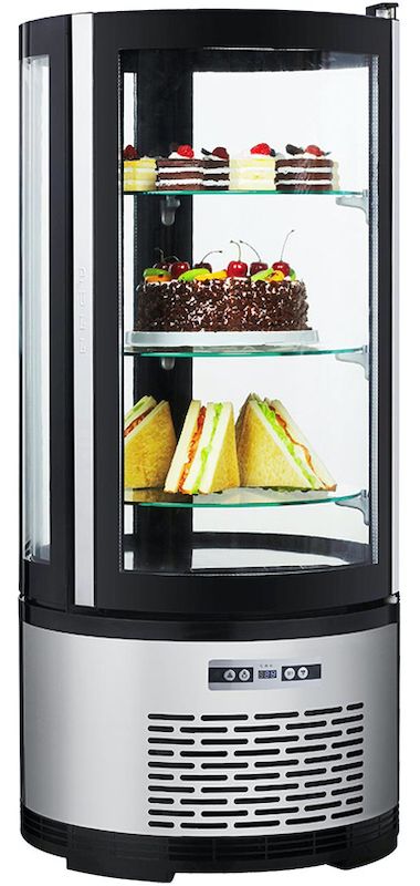 Кондитерский шкаф Hurakan HKN-UPD100 предназначен для демонстрации, охлаждения и краткосрочного хранения кондитерских изделий, закусок и десертов на предприятиях общественного питания и торговли. Модель оснащена 3 круглыми стеклянными полками. Оборудование работает на хладагенте R600a.