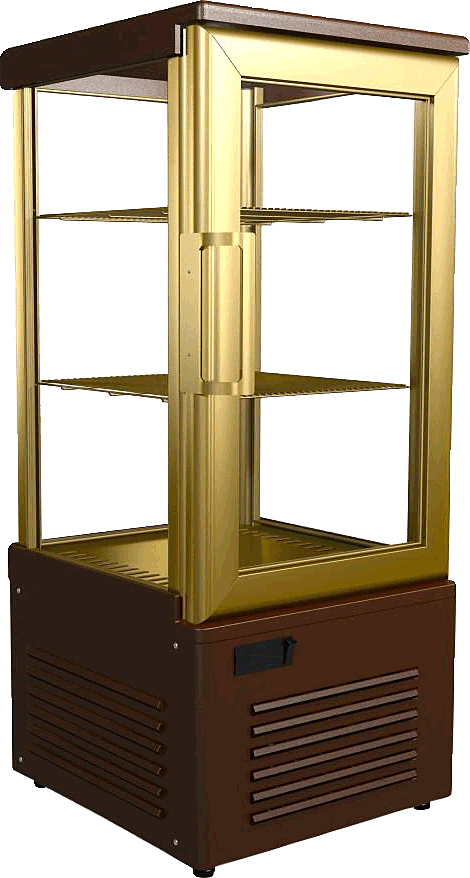 Кондитерская шкаф-витрина KAYMAN К-ШВ-120 предназначена для охлаждения, кратковременного хранения и демонстрации выпечки, тортов, пирожных и пиццы на предприятиях общественного питания и торговли. Модель оснащена 2 полками-решетками, тепло-белой LED-подсветкой и регулируемыми ножками. Оборудование устанавливается на барную стойку. Дверь выполнена из стекла, 3 другие стороны - из стеклопакетов.
