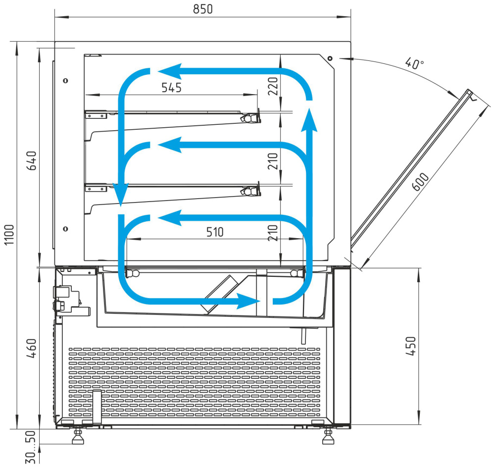 - Регулируемые ножки: от 30 до 50 мм