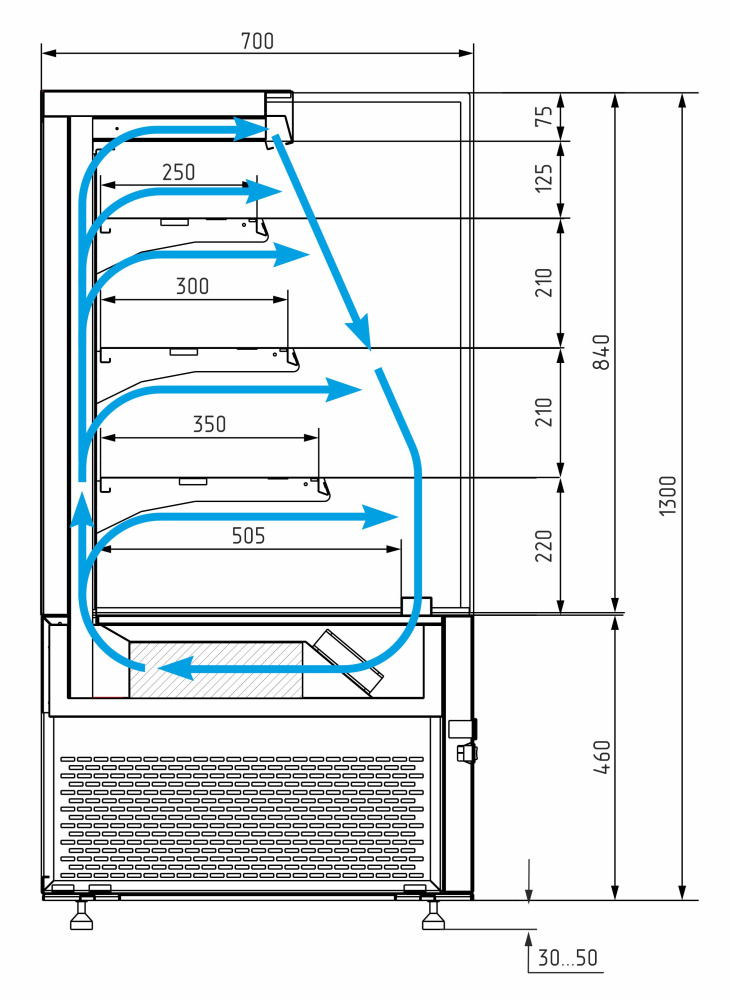 - Идеально подходит для любой конфигурации помещений, дает возможность легко менять и расширять концепцию, варьируя пространством и объемом экспозиции продуктов