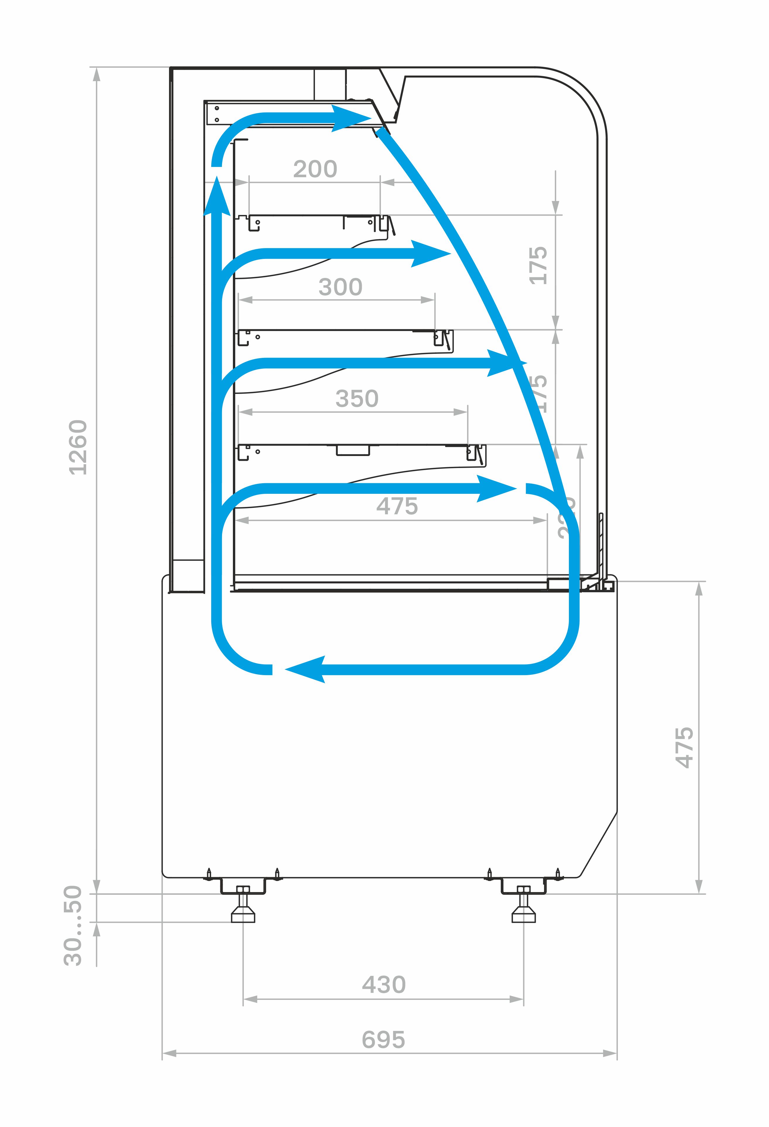 • Запрещается эксплуатация витрины при попадании на нее прямых солнечных лучей, воздушных потоков от кондиционеров, вентиляторов и обогревателей